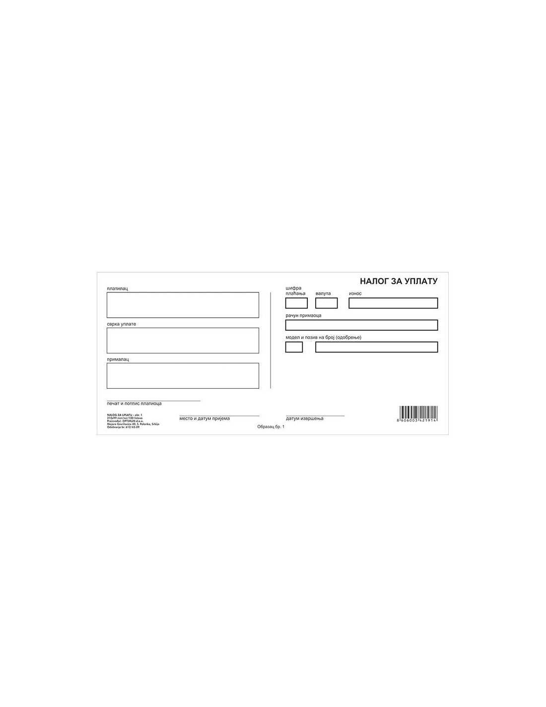 - Obrazac: Nalog za uplatu br.1