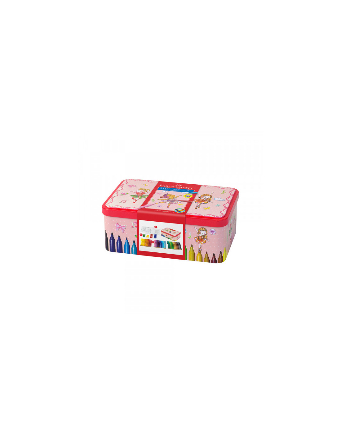 - Sadržaj: 33 flomastera u različitim bojama+ 10 kopči za povezivanje flomastera + 2 kartona za bojenje u printu balerine
